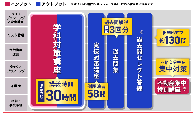 さらに、「実技対策講座」「過去問集」「過去問セレクト答練」などアウトプットの機会も豊富。インプットだけでなく得点力を鍛える環境が整っているため、初学者でも短期間で合格を狙えます。
