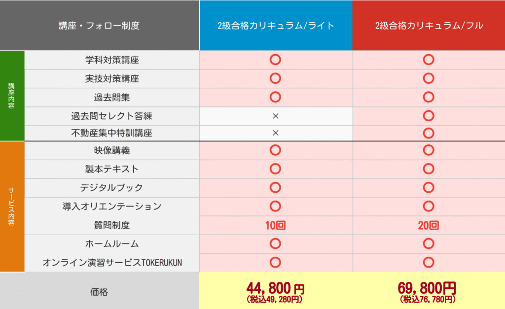 一方、ライトカリキュラムは、ある程度知識のある方や必要最低限で効率的に合格を目指したい方に向けたプラン。費用が抑えられているため、コスパ重視の方にも選ばれています。