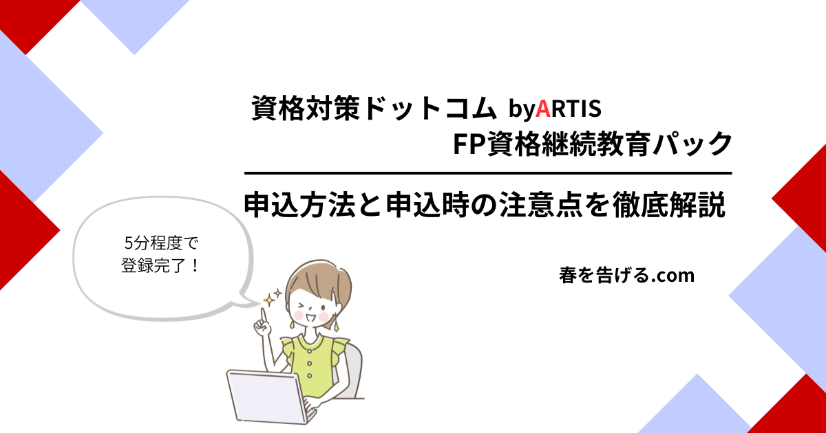 そこで今回は、認定教育機関・株式会社アーティスソリューションズが運営する資格対策ドットコム「FP資格継続教育パック」の申込方法と申込時の注意点を詳しく解説していきます。