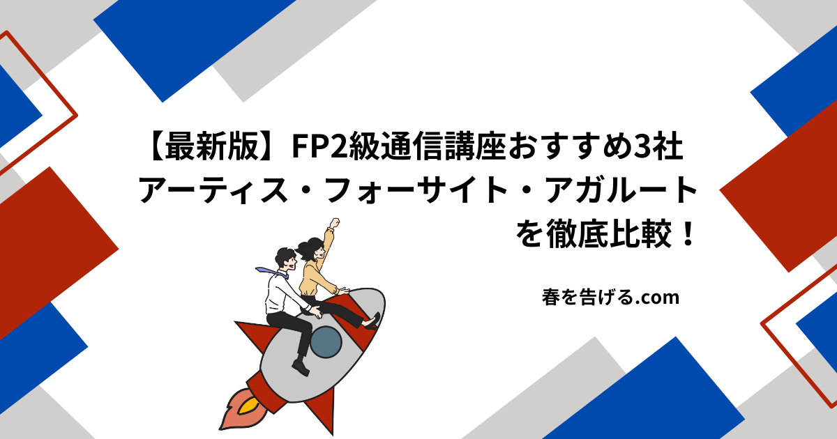 そこで今回は、最新のおすすめFP2級通信講座3社(アーティス・フォーサイト・アガルート)を徹底比較!目的別にそれぞれの講座の特徴をわかりやすく解説します。