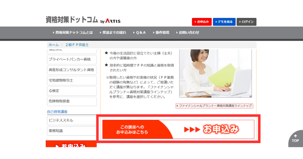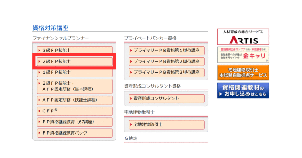 - 資格対策ドットコムbyARTISの2級FP技能士講座に申し込みたい