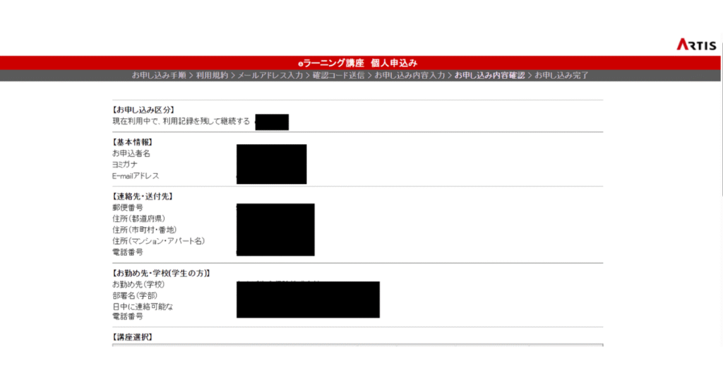 申込み後の受講取消・解約はできないため、入力内容は必ず丁寧に確認してください。