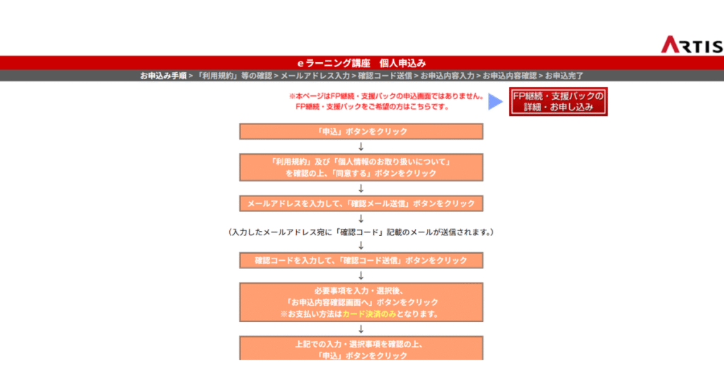 今回の記事では、資格対策ドットコムbyARTIS『2級FP技能士講座』の申込方法の流れと注意すべきポイントを実際の画面構成をイメージしながら、わかりやすく解説します。