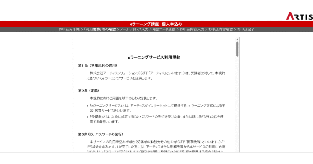 続いて「eラーニングサービス利用規約」と「個人情報のお取り扱いについて」が表示されます。